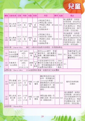 29/7- 15:45 7-12 2. 學習自理小廚房, 如需證書,參加者必
