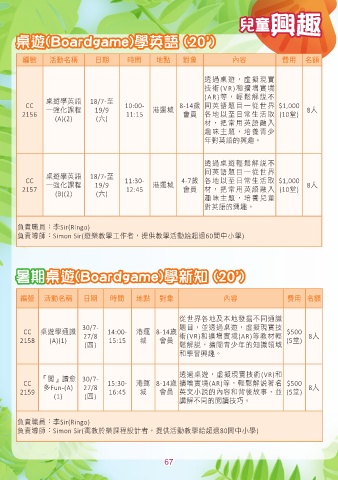 CC 桌遊學通識 27/8 14:00- 港運 8-14歲 $500