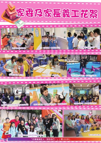 家委及家長義工花絮 協助圖書館包裝圖書 協助小一認識校園,適應校園生活 協助拍攝學生相整理儀容 協助推行模擬人生活動 協助校務工作,分發通告 只要小朋友玩得開心,家委不介意濕身 家長義工向其他家長教授製作饅頭之秘訣 家長義工搖身一變成為專業化妝師,為表演生化妝 透過家長學堂,學習管教子女技巧 各家委通力合作協助學校舉辦嘉年華會 義工組長協助聯絡 各義工出席服務 12 「你應當愛近人,如你自己。」(瑪 22:39)