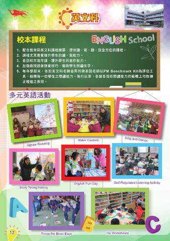 1. 配合教育局英文科課程綱要,提供讀、寫、聽、說全方位的課程。