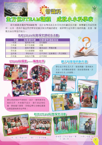 本科積極推動STEAM教育,設計出有系統及多元化的科學探究活動,培養學生的探究精