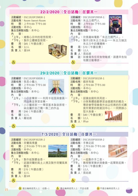22/2/2020(全日活動)任選其一