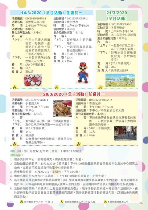 14/3/2020(全日活動)任選其一 21/3/2020
