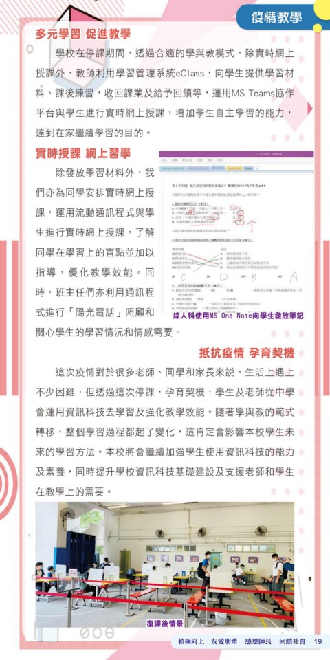 式進行「陽光電話」照顧和 綜人科使用MS One Note向學生發放筆記