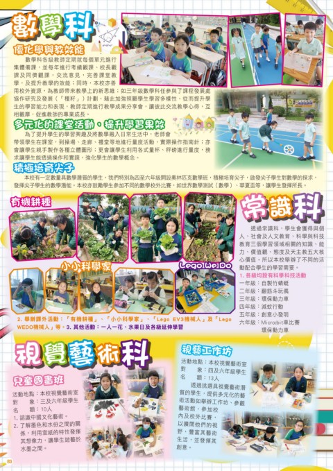 2. 舉辦課外活動:「有機耕種」、「小小科學家」、「Lego EV3機械人」及「Lego 六年級:Micro:bit車比賽