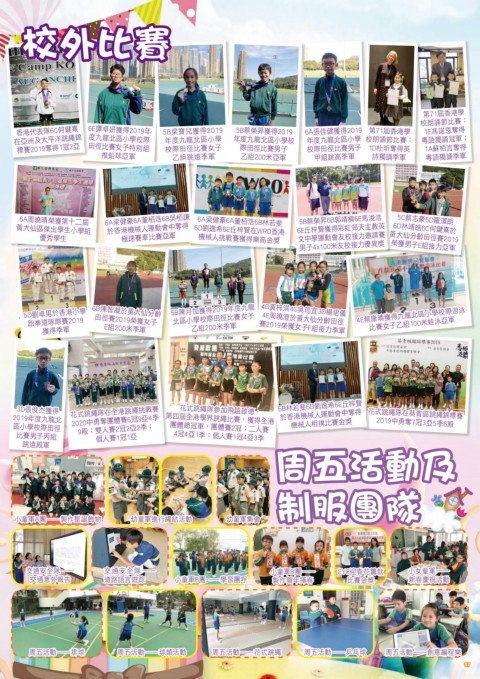 5D劉卓男於香港小學 6D陳智凝於黃大仙分齡 5B陳月加獲得2019年度九龍 4D黃梓淇4C吳筠宜3D楊珺儀 4E蔡康晴獲得九龍北區小學校際游泳