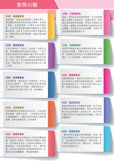 感謝學校、老師在疫情期間一直關心學生。 變以及教學上的新安排。感謝校長和一眾老