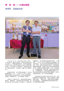 回想在三十週年特刊中,我提到物理科無論在 的重大意義 讓學生建立一套畢生受用的價值觀。