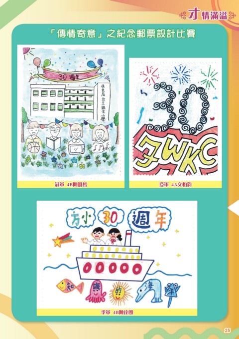 才情滿溢 「傳情寄意」之紀念郵票設計比賽 冠軍 4B陳明哲 亞軍 4A文柏鈞 季軍 4B陳達朗 25