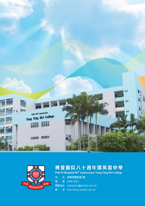 博愛醫院八十週年鄧英喜中學 th Pok Oi Hospital 80 Anniversary Tang Ying Hei College 地 址:將軍澳唐賢里2號 電 話:2246 3221 電郵地址:webadmin@pohtyh.edu.hk 網 址:http://www.pohtyh.edu.hk