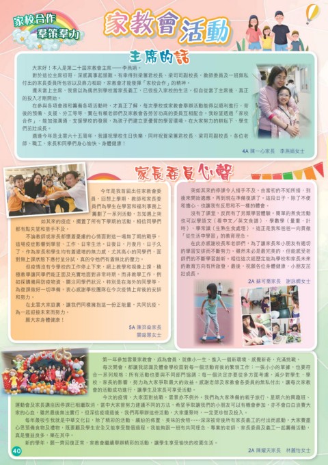新的學年,願一齊回復正常,家教會繼續舉辦精彩的活動,讓學生享受愉快的校園生活。