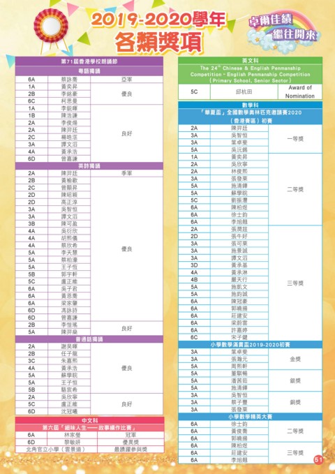 2019-2020學年 卓爾佳績