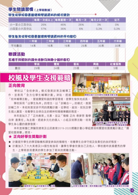 訓輔工作。本校刻意安排不同的獎勵計劃,從學校、級別、班別及學