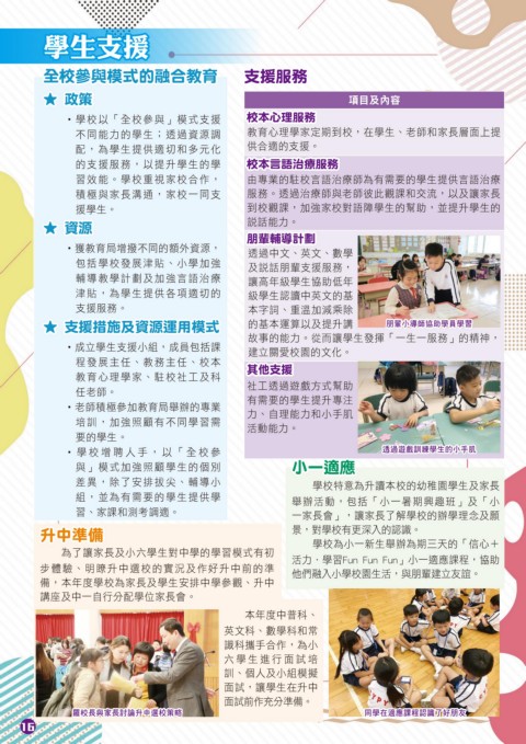 步體驗、明瞭升中選校的實況及作好升中前的準 他們融入小學校園生活,與朋輩建立友誼。
