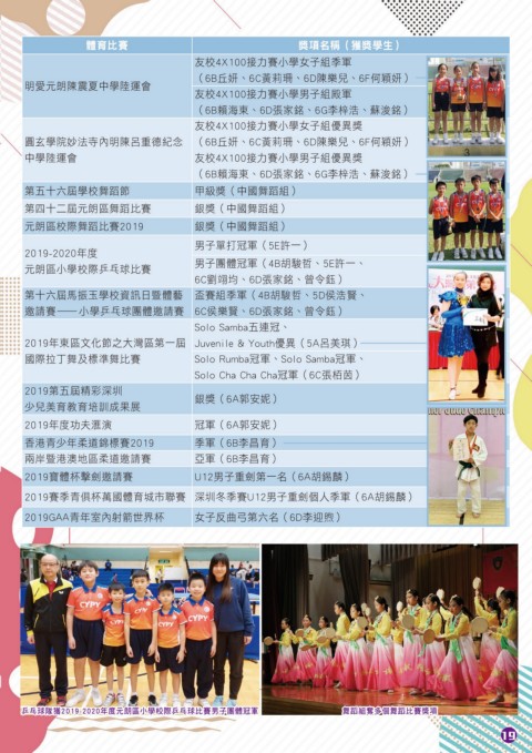 乒乓球隊獲2019-2020年度元朗區小學校際乒乓球比賽男子團體冠軍 舞蹈組奪多個舞蹈比賽獎項