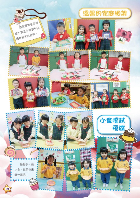 溫馨的家庭相架 幼兒運用色彩繽 紛的雲石方磚製作出 獨特的家庭相架。 小食嚐試 ─飛碟 動動手,做 小食。你們也來 嚐一嚐吧! 16