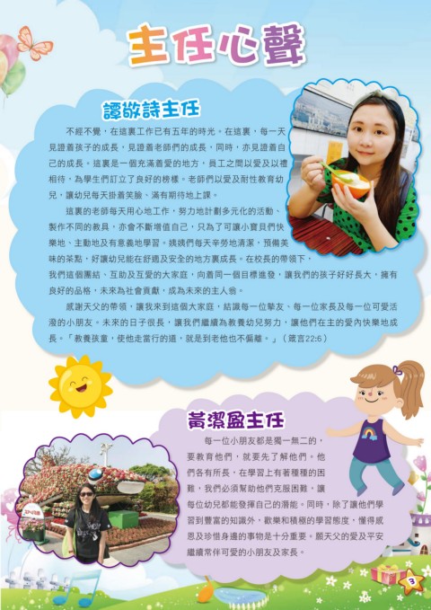 感謝天父的帶領,讓我來到這個大家庭,結識每一位摰友、每一位家長及每一位可愛活