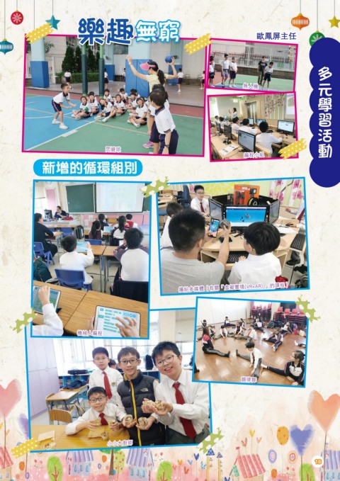 課外活動 樂趣無窮 歐鳳屏主任 多元 學習活動 無人機 閃避球 編程小組 新增的循環組別 繽紛多媒體(有關「虛擬實境(VR+AR) 」的課程) 機械人編程 韻律舞 小小大廚師 16