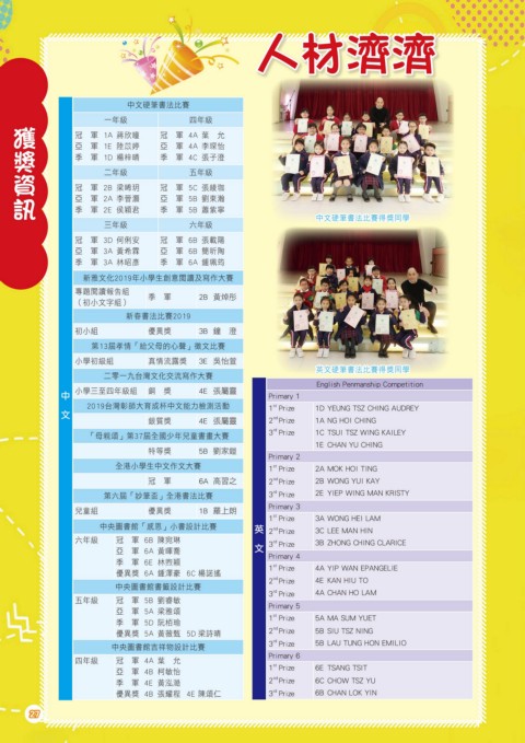 優異獎 4B 張耀程 4E 陳頌仁 3 Prize 6B CHAN LOK YIN