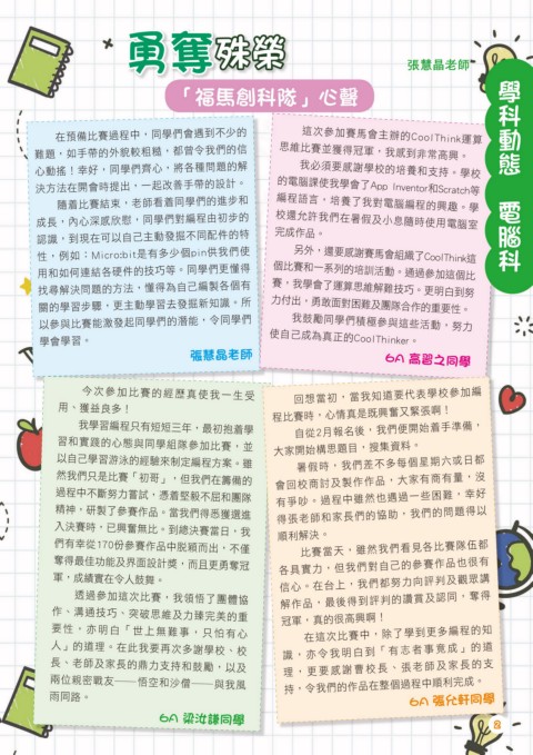 隨着比賽結束,老師看着同學們的進步和 編程語言,培養了我對電腦編程的興趣。學