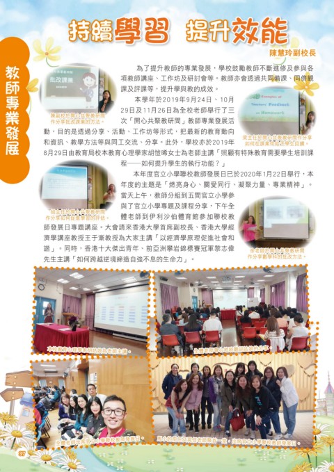 和資訊、教學方法等與同工交流、分享。此外,學校亦於2019年 如何在課業中給予學生回饋。