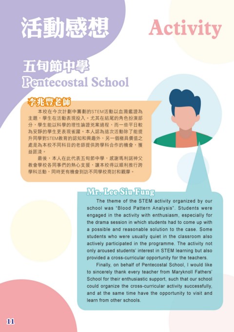 本校在今次計劃中籌劃的STEM活動以血濺鑑證為