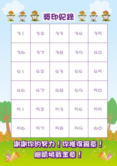 獎印紀錄 31 32 33 34 35 36 37 38 39 40 41 42 43 44 45 46 47 48 49 50 51 52 53 54 55 56 57 58 59 60 謝謝你的努力!你獲得銀章! 繼續挑戰金章! 15