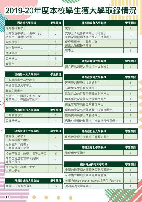 2019-20年度本校學生獲大學取錄情況