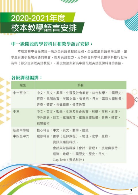 為科(部分班別以英語教授),藉此加強與新高中階段以英語授課科目的銜接。