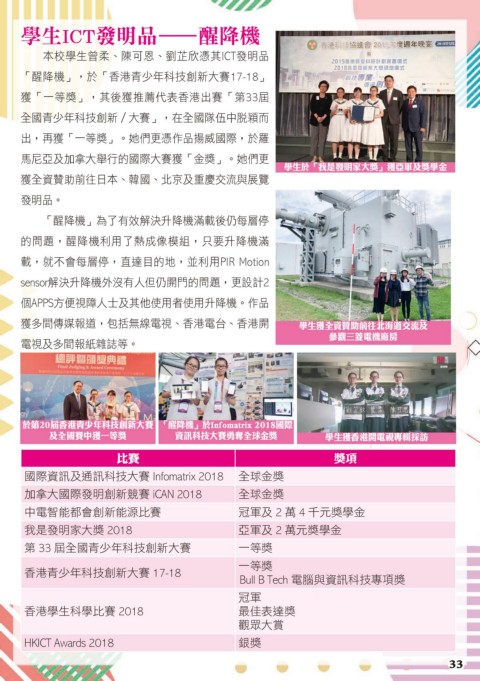 於第20屆香港青少年科技創新大賽 「醒降機」於Infomatrix 2018國際