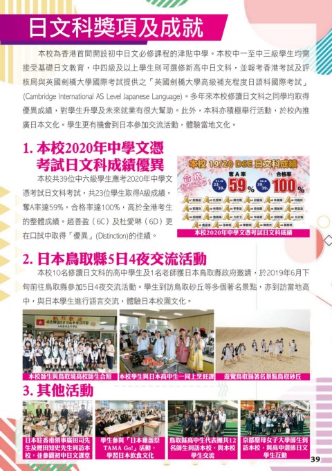 廣日本文化。學生更有機會到日本參加交流活動,體驗當地文化。