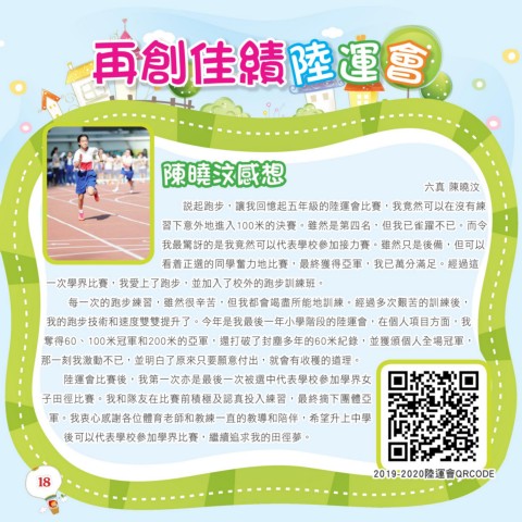 我的跑步技術和速度雙雙提升了。今年是我最後一年小學階段的陸運會,在個人項目方面,我