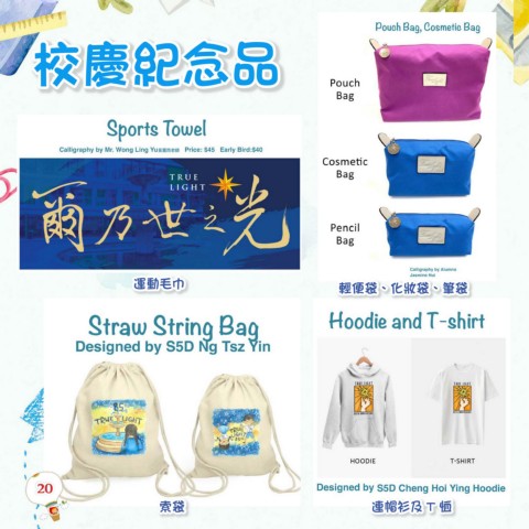 校慶紀念品 運動毛巾 輕便袋、化妝袋、筆袋 20 索袋 連帽衫及 T 恤