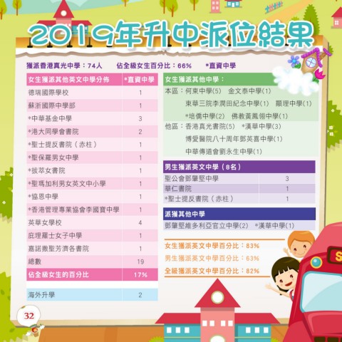 獲派香港真光中學:74人 佔全級女生百分比:66% *直資中學