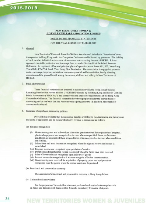 2018-2019 34 NEW TERRITORIES WOMEN & JUVENILES WELFARE ASSOCIATION LIMITED