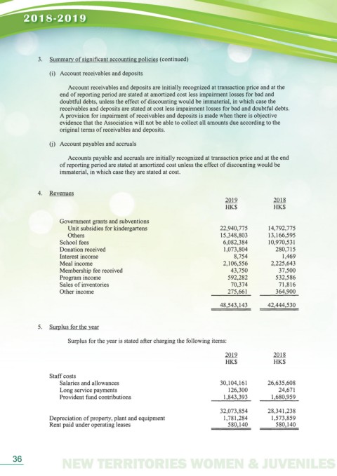 2018-2019 36 NEW TERRITORIES WOMEN & JUVENILES WELFARE ASSOCIATION LIMITED