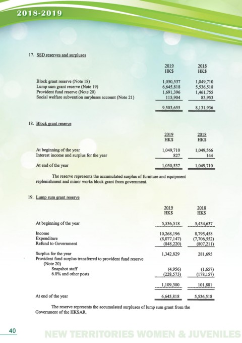 2018-2019 40 NEW TERRITORIES WOMEN & JUVENILES WELFARE ASSOCIATION LIMITED