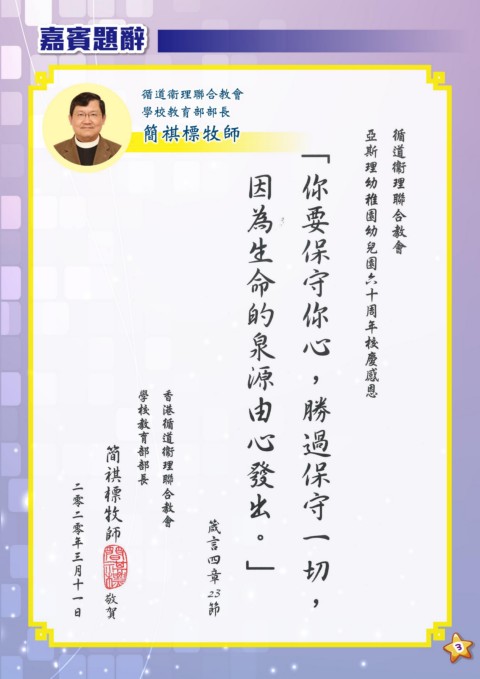 嘉賓題辭 循道衞理聯合教會 學校教育部部長 簡祺標牧師 3