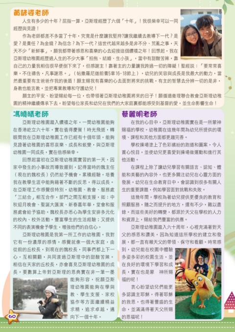 亞斯理幼稚園踏入鑽禧之年,一間幼稚園能夠 在我的心目中,亞斯理幼稚園實在是一所蒙神