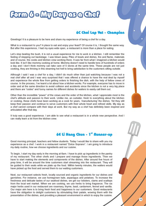 Greetings! It is a pleasure to be here and share my experience of being a chef for a day.