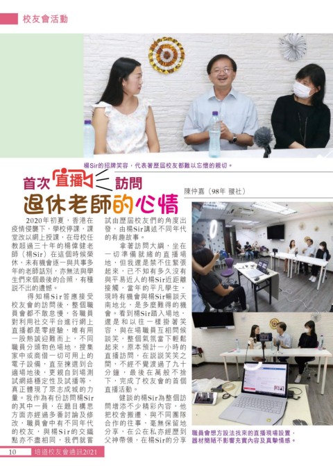 的校友,與楊 Sir 的交織 分享,在公在私亦經歷到 職員會想方設法找來的直播現場設置,