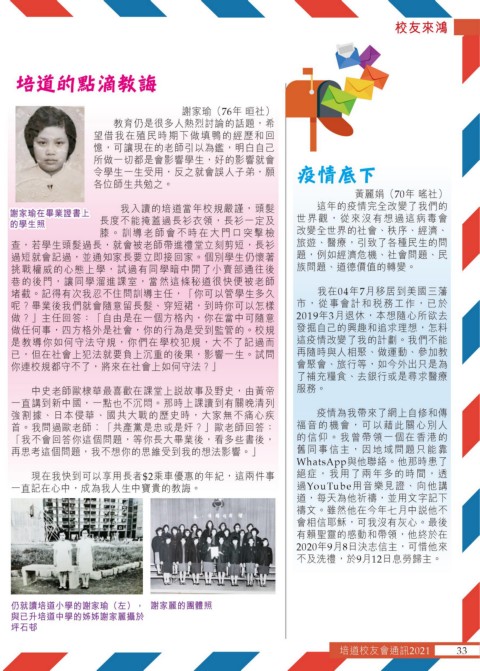 謝家瑜在畢業證書上 我入讀的培道當年校規嚴謹,頭髮 這年的疫情完全改變了我們的