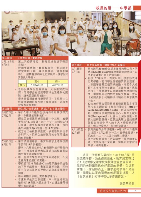 5月27日至 - 早於5月10日通知全校持份者有關復課安 勵,提醒同學要對神有信心。歌曲上載到