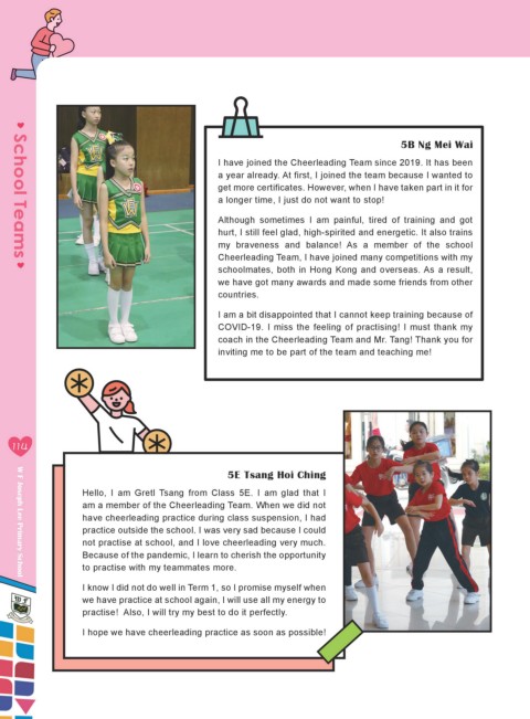 I have joined the Cheerleading Team since 2019. It has been