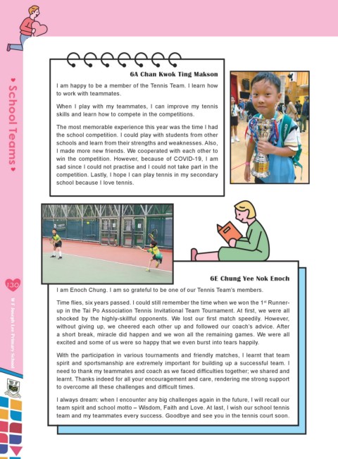 team spirit and school motto – Wisdom, Faith and Love. At last, I wish our school tennis