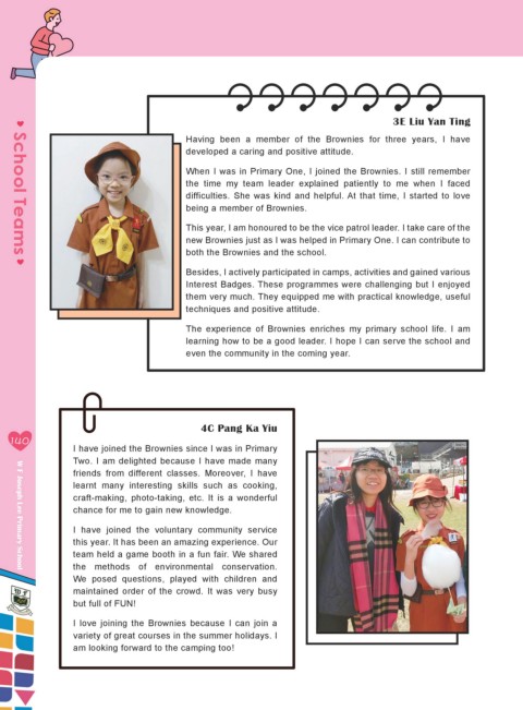 The experience of Brownies enriches my primary school life. I am
