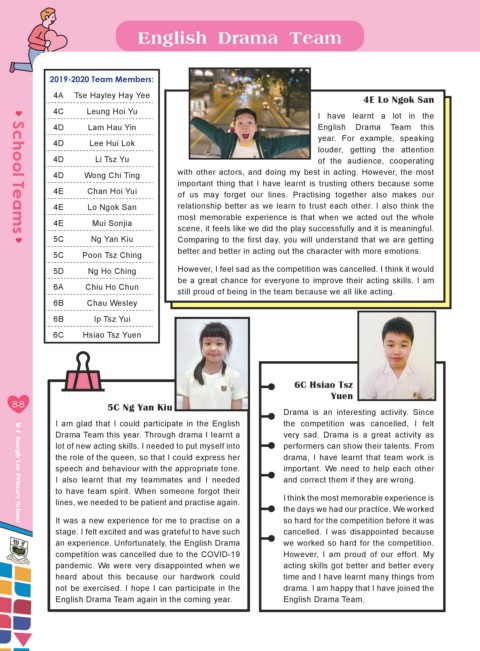 6A Chiu Ho Chun still proud of being in the team because we all like acting.