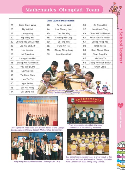2C Lee Yui Chit Jiff 5E Fung Yin Hei 6C Shek Yi Hin School Teams