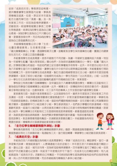 性的輔導工作,按各年級學生的成長需要,製訂合適的情緒管理及社交小組,雖然本年度因疫情
