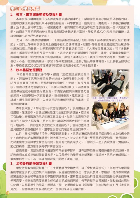 要的學童提供多元化的校本支援服務,服務層面包括學生、家長及教師。學期初,特殊教育需要